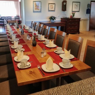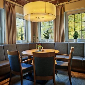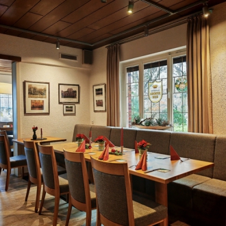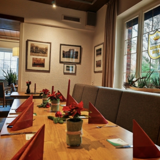 In unserem frisch renovierten Saal ist Platz für ca.50 Gäste, dieser kann durch eine Schiebetür unterteilt werden.
